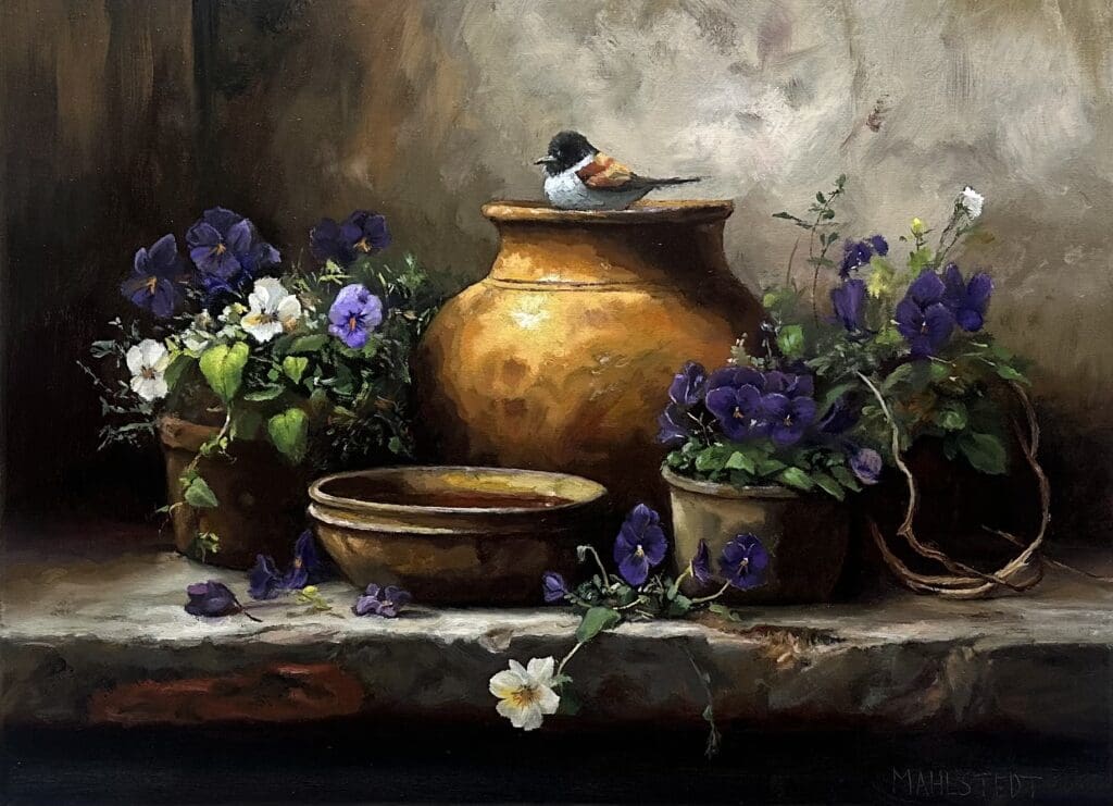 | James F. Mahlstedt | Greenville SC | Pansies and Pots | 12" x 16" | $1,000 |