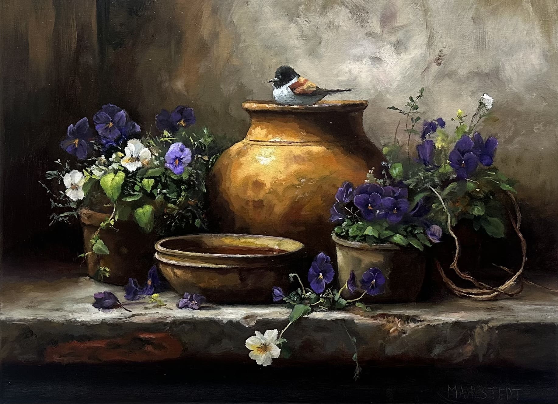 | James F. Mahlstedt | Greenville SC | Bird and flower | 12" x 16" | $975 |